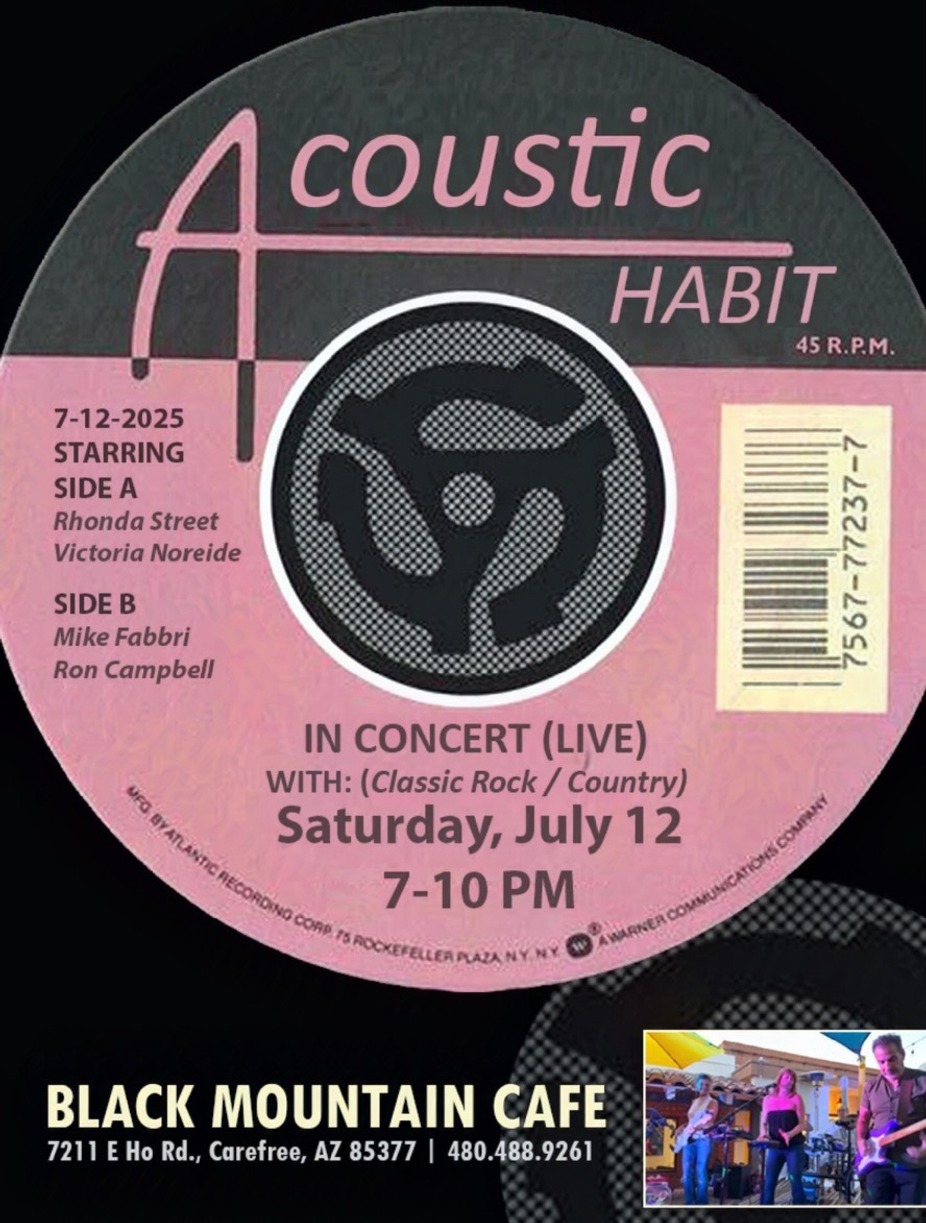 Starting January 15th! Enjoy a select few of your favorite invited local musicians as they hang out and entertain you with their music, stories and banter, every 1st and 3rd Thursday. Get to know them as they speak about what music does for them, how they got started, why they continue to play, etc. they will also take questions from you. Special campfire menu items will be available on these evenings. Groovy Hour extended on these nights, running from 3-6:30pm. Reserve your space by calling 480-488-9261, or reserve online.